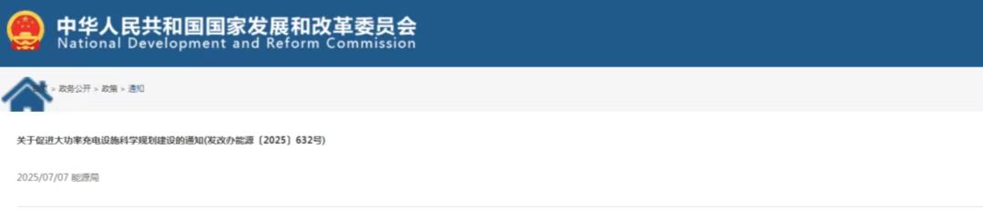 2025 年促进大功率充电桩科学规划的通知是《关于促进大功率充电设施科学规划建设的通知 (发改办能源〔2025〕632 号)》国家发展和改革委员会网站。该通知由国家发展和改革委员会等部门发布,旨在优化完善中国充电设施网络布局,构建大功率充电基础设施体系国家发展和改革委员会网站。具体内容如下国家发展和改革委员会网站: